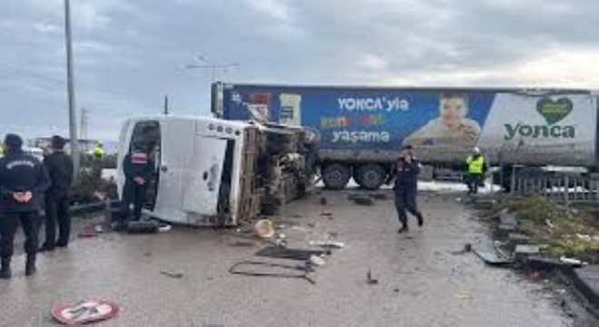 Kaza, sabah saat 08.53’te yaşandı. Henüz sürücüleri ve plakaları belirlenemeyen okul servisi ile tırın çarpışması üzerine bölgeye çok sayıda ambulans, jandarma, polis ve itfaiye ekipleri sevk edildi. Çarpışmanın şiddetiyle devrilen okul servisindeki 26 kişi yaralanırken, yaralılar sağlık ekiplerince çevredeki hastanelere kaldırıldı.