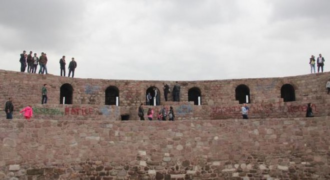 Başkent’in simgelerinden tarihi Ankara Kalesi, 2 ay süren çalışmanın ardından yine vandalların hedefi oldu. Kent turizminin gözbebeği Ankara Kalesi, turist sayısının arttığı yaz ayları başlamadan buhar makinesi, saf aseton ve boya sökücü kimyasal bir sıvı kulllanılarak temizlendi. Ancak tarihi surların temiz halinin ömrü, 1 ay bile sürmedi. Büyükşehir Belediyesi Kent Estetiği Daire Başkanlığı ekiplerince tarihi dokunun zarar görmemesi için titiz bir çalışmayla temizlenen tarihi surlar, yeniden sprey boya yazılarıyla doldu. Tarihi yapının korunması için hiçbir güvenlik önleminin alınmadığı surları hedef alan vandallar, temizlik çalışmasının ardından yine bildiklerini okudu. Vandallar, gün içinde turist akınına uğrayan surları, havanın kararmasıyla yazı tahtasına çevirdi. Surlara, sprey boyalarla yazılar yazılıp, graffitiler yapıldı.