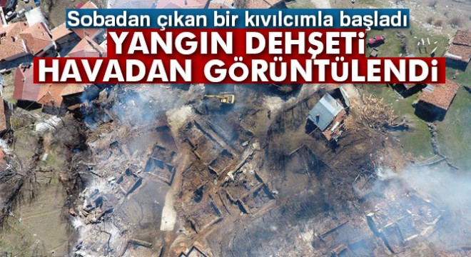 Sobadan çıkan kıvılcımla başlayan ve neredeyse köyün yarısını saran yangının büyüklüğü günün ilk ışıklarıyla ortaya çıktı. Çankırı’nın Ilgaz ilçesine bağlı Serçeler köyü drone ile havadan görüntülendi.