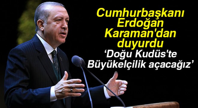 "Şimdi yeni bir durum ortaya çıktı. Kudüs." diyen Erdoğan, "Kudüs’te evanjelist, siyonist bir anlayış ben yaptım oldu mantığıyla Kudüs’ü İsrail’in başkenti ilan ediyor ve kendi büyükelçiliklerini de alıyorlar. 1980 yılı 470 sayılı BM kararına rağmen bu adımı atanlar, biz sizi tanımıyoruz, biz yaptık oldu mantığı öyle mi diyorsunuz… Biz de sizi tanımıyoruz. Çarşamba günü İslam İşbirliği Teşkilatı liderler zirvesini olağanüstü toplantıya çağırdık. Sağ olsun hepsi geldiler toplantıya. Hristiyan dünyasının lideri Papa'yı aradım. Onun da bizim ile aynı düşüncede olduğunu gördüm. Bir taraftan da Bağlantısızlar lideri Venezuela Devlet Başkanını davet ettim. Sağ olsun o da toplantımıza katıldı ve orada mesajını çok açık net verdi. O da yetmez Arap Liginin dönem başkanı Ürdün Kralı 2. Abdullah’ı da davet ettim, o da geldi ve birlikte mesajlarımızı verdik. Geleceğim yer şu; bu mesajla, oy birliği, ittifakla dünyaya şu duyuruldu: Burayı kesinlikle Müslümanların bir başkenti olan Kudüs’ü Yahudilere mal edemezsiniz. Burada Müslüman ve Hristiyanların bir kadim tarihi vardır ama diğerlerinin yoktur. Siz de lütfen yerinizde durun ve Siyonist bir operasyon yapmaya kalkmayın. Kalkarsanız bunun da bedeli ağır olur. Türkiye bölgede attığı adımlarla bu kirli hesaplara çomak sokmuştur. Terör devletinin kurulmasına engel olmuştur. Çıkmış Kemal konuşuyor, diyor ki, ‘Orası diyor, hemen Filistin'in başkenti olarak ilan edilmeli’ diyor. Biz Filistin’in başkenti olarak çoktan ilan ettik. Kudüs şu anda işgal altında olduğu için oraya gidip büyükelçiliğimizi açamıyoruz. Ama bizim şu anda başkonsolosluğumuz bile büyükelçi ile temsil ediliyor. Fiili olarak biz bu işi yapmışız. Ama inşallah o gün de yakın. Bizim bizzat resmi olarak da o günler yakın ve büyükelçiliğimiz ayrıca orada açacağız" dedi.