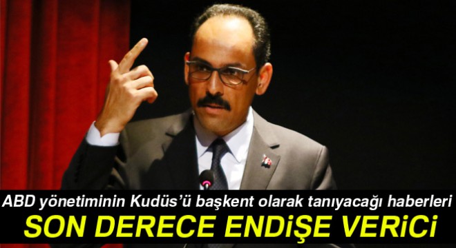 Cumhurbaşkanlığı Sözcüsü İbrahim Kalın, "ABD yönetiminin Kudüs’ü İsrail’in başkenti olarak tanıyacağı haberleri, son derece endişe vericidir. Bu, Kudüs’ün dini ve tarihi statüsüne, uluslararası anlaşmalara ve BM kararlarına tamamen aykırıdır" dedi.