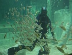 Akvaryumda 1,5 metrelik kum kaplanı türü köpek balığı, koi, pirana, denizatı, picasso balığı ve 450 milyon yıllık mavi kanlı at nalı yengecinin bulunduğunu belirten Taşkıran, “Akvaryumda 4 milyon litre su yer alıyor. Özellikle salı, cuma ve pazar günleri saat 15.00’da dalgıçlarımız tarafından gerçekleştirilen canlıların beslenme anları ilgiyle takip ediliyor” diye konuştu.