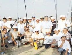 Yoğun iş temposu içinde biraz olsun stres atmaya çalışan basın mensupları ellerinde oltalarla balık tutmaya çalışırken, renkli görüntüler de ortaya çıktı.