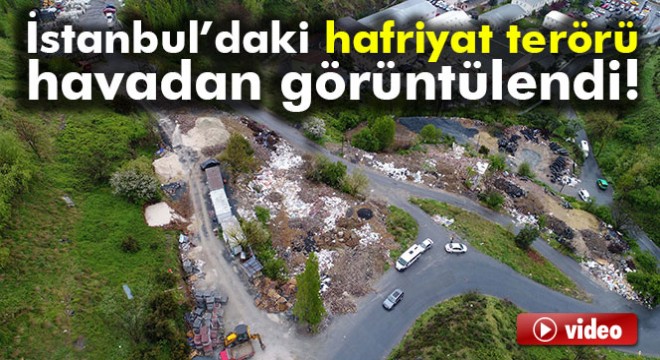Kağıthane’de yol kenarına dökülen kaçak hafriyat, belediye tarafından yıkılan gecekonduların enkazları ve atılan çöplerin oluşturduğu çevre kirliliği havadan görüntülendi.