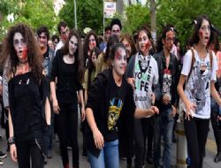 ANKARA / Kızılay İkaros Kafe’de buluşan grup, makyaj yapıp Kızılay’da zombi yürüşüyü gerçekleştirdi. Organizasyonu düzenleyen fotoğraf sanatçısı Erkan Yalvaç ve Ozan Kıran, etkinliğin sadece eğlence amaçlı düzenlendiğini dile getirerek, “Makyajdan elde edilen geliri de LÖSEV’e bağışlayacağız” dedi. Yüzlerce kişi, öğle saatlerinde buluşarak hayranı oldukları zombilere benzemek için saatlerce makyaj yaptırdı. Vatandaşlar, ise Kızılay sokaklarında zombileri görünce şaşkınlıklarını gizleyemedi.ANKARA /