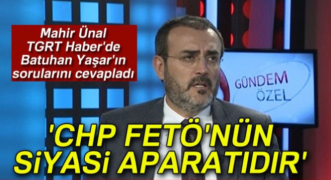 CHP’nin yerli ve milli bir parti olmadığının altını çizen Mahir Ünal, CHP’nin 17-25 Aralık’tan sonra açıkça FETÖ ile kol kola girdiğini belirterek, "Biz 2010’dan bugüne kadar CHP’nin bütün söylem analizini yaptık 17 dosya halinde. Gördüğümüz tek bir şey var, Kemal Kılıçdaroğlu’nun CHP’si Türkiye düşmanı yapıların içerideki operasyon aparatıdır, içerideki sözcüsüdür" dedi.