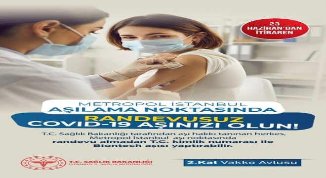 Metropol İstanbul, 23 Haziran’dan itibaren tüm ziyaretçilerine Covid-19 aşı hizmeti verecek. Aşı hakkı olan herkes, Metropol İstanbul’un ikinci katında yer alan sinema avlusunda kurulan aşılama noktasında randevusuz ve direk kayıt işlemiyle Covid- 19 aşısını yaptırabilecek.