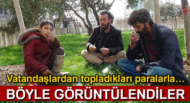 İçki alemi kameradaTaksim’de Suriyeli dilencilerin ibretlik halleri, “bu kadarına pes” dedirtti. Taksim Meydanına gelen Suriyeli Faysal Mahmut, Cemal Feysal ve kızı Çiçek, vatandaşların duygusunu sömürerek dilenmeye başladı. Bir süre dilenen ve yeterli miktarda para toplayan Suriyeliler, ardından içki alarak Gezi Parkı’na gitti. Yeşillik alana oturan Suriyeli iki dilenci, küçük kızın yanında içki içmeye başladı. Suriyeli dilencilerin içki alemi kameralara da yansıdı.