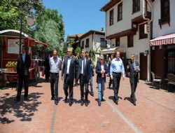 ANKARA / Altındağ Belediyesi’nin hizmetlerinin anlatıldığı toplantıda kentsel dönüşümden restorasyona, toplu konut projelerinden ulaşım ağının genişletilmesine kadar pek çok konu masaya yatırıldı. Tarsus’tan gelen idareciler, Hamamönü ve Ulucanlar Cezaevi’ndeki restorasyon çalışmalarıyla yakından ilgilendi. Yenileme çalışmalarının çok kısa bir sürede tamamlanması karşısında şaşkınlığını gizleyemeyen idareciler, bölgeye hayran kaldı.  Toplantıda, Altındağ Belediyesi tarafından ilçeye kazandırılan İlçe Emniyet Müdürlüğü, İlçe Müftülük Binası, okullar, sağlık ocakları, parklar ve sportesislerinden de bahsedildi. ANKARA /