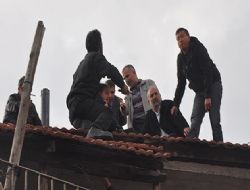 Üç çocuğuyla çatıya çıktı