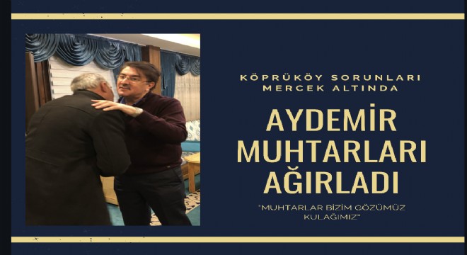 Son olarak Erzurum'un tarihi ilçelerinden birisi olan Köprüköy'ün köy ve mahalle muhtarlari ile bir araya gelen Aydemir "Muhtarlar bizim milletimizle irtibatımızda gözümüz kulağımız, en hassas kanalımızdır. Onlarla yaptığımız istişareler sonucu milletimize hizmet olarak dönüyor ve milletimizin çok daha huzur üzere yaşamalarını temin ediyor." Değerlendirmesinde bulundu.
