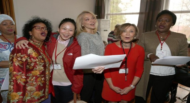 Ankara’da görev yapan büyükelçi ve diplomat eşlerinin oluşturduğu Spouses of Head of Mission (SHOM) üyeleri, yılbaşı kermesinde bir araya geldi. Geliri Türkiye’de faaliyet gösteren yardım kuruluşlarına aktarılacak olan etkinlikte, Almanya sefiresi Marion Erdmann, yeni yıl şarkıları söyledi.