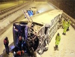 Yolcu otobüsü otoyolda devrildi