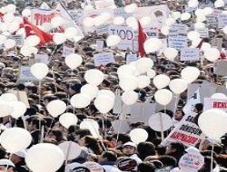 Sağlık çalışanlarının düzenlediği “Çok ses tek yürek” mitinginde 20 bin sağlık çalışanı Sıhhiye meydanında buluştu. 2 bin 695 polisin görev aldığı eylemde, sağlıkçılar ‘Eşit, parasız ve ulaşılabilir sağlık hizmeti’ çağrısında bulundu.