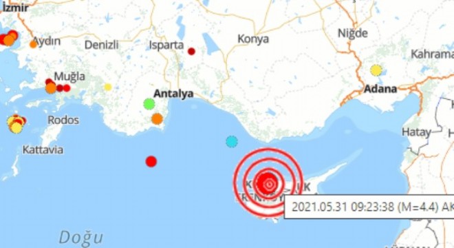 Akdeniz'de, 4.4 şiddetinde deprem oldu.