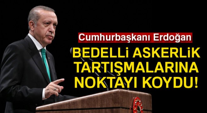 Cumhurbaşkanı Recep Tayyip Erdoğan, bedelli askerlik tartışmalarına noktayı koyarak, "Kabine ve hükümetin gündeminde bedelli askerlik yok" dedi.