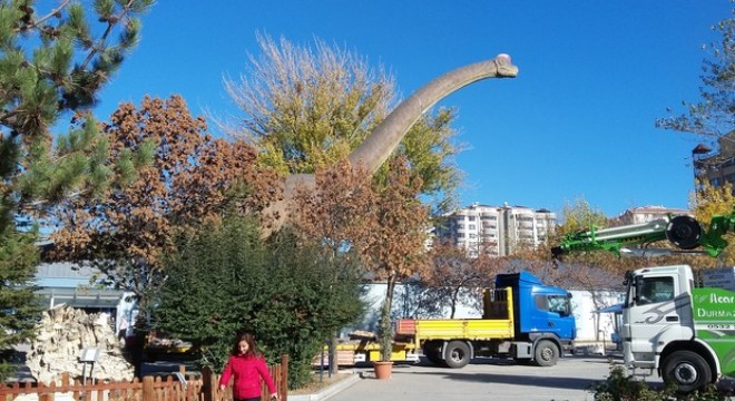 Enerji ve Tabii Kaynaklar Bakanlığı’na bağlı Maden Tetkik ve Arama Genel Müdürlüğü (MTA) Tabiat Tarihi Müzesi’ndeki dev dinozor maketi, önceki gün TIR üstünde yürüdü.
