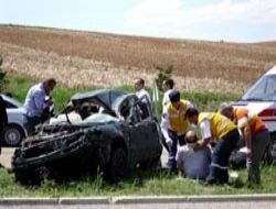 KIRIKKALE yakınlarında rampa inen bir otomobil, sürücüsünün direksiyon ...