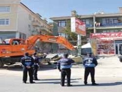 GÖLBAŞI Belediyesi Haymana Yolu üzerinde kaçak yapılan bir marketin önünde bulunan manav ile depo bölümü belediye kepçesi tarafından yıkıldı.