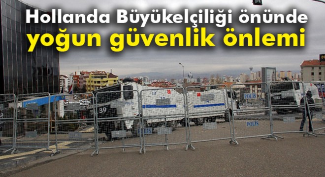 Türkiye ile Hollanda arasında yaşanan krizden sonra Hollanda Büyükelçiliği önünde alınan güvenlik önlemleri üst seviyede devam ediyor. Büyükelçiliğe giriş ve çıkışlara izin verilmiyor.