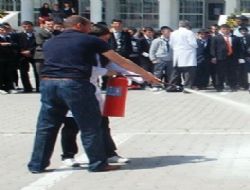 Daha sonra öğrencilere okul bahçesinde yangın tatbikatı yaptırıldı. Kontrollü olarak, güvenlik çizgileri içerisinde çıkarılan yangınlara, öğrenci ve öğretmenler yangın tüpleri ile müdahale etti.
