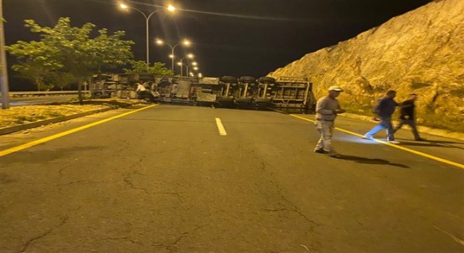 Şanlıurfa'nın Eyyübiye ilçesinde sıvı yağ yüklü tırın devrilmesi sonucu meydana gelen kazada sürücü hafif yaralandı.