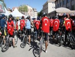 Sırtlarına Türk bayrakları asan bisikletliler, festival alanını tek sıra halinde turladı. Grup; Başkan Özden, belediye meclis üyeleri, polis ve zabıtaların da katılımıyla şehitler anısına saygı duruşunda bulunup İstiklal Marşı'nı okudu.