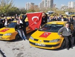 155 araç ve 355 şoför ile Ankara’nın en kalabalık durağı olan AŞTİ Taksi Durağı, dün terör saldırısını protesto etmek amacıyla yola çıktı. AŞTİ önünden hareket eden 100 araç, TBMM ve Cinnah üzerinden Kızılay’a yöneldi. Güzergah üzerindeki diğer taksi duraklarının da desteğiyle bir araya gelen yaklaşık 350 taksi, terör saldırısını protesto etmek amacıyla bir süre Kızılay Meydanı’nda korna ve klakson çaldı.