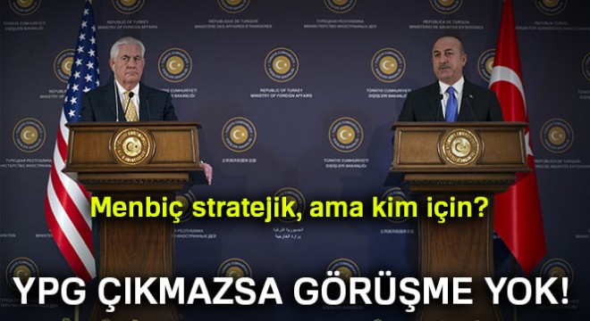 Cumhurbaşkanı Recep Tayyip Erdoğan’la Beştepe’de 3 saat 15 dakika görüşen ABD Dışişleri Bakanı Rex Tillerson dün de Dışişleri Bakanı Çavuşoğlu ile bir araya geldi. Yaklaşık 2,5 saat süren görüşmenin ardından iki bakan ortak basın toplantısı düzenledi. Görüşmenin ana maddesi ise Menbiç ve burada bulunan YPG terör örgütü oldu. Çavuşoğlu, ABD’li mevkidaşına iki ülke ilişkilerinin eski günlerine dönmesinin şartının YPG’li teröristlerin Menbiç’i terk etmesi olduğunu belirtti.